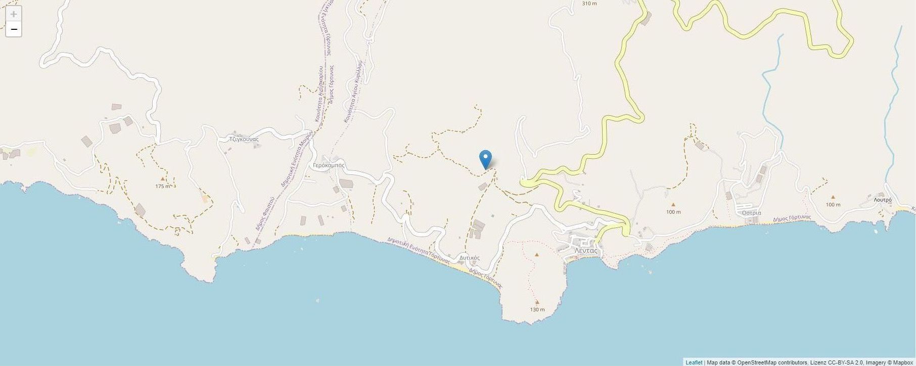 Der alte Hafenort liegt in einer kleinen Bucht am Fuß des Asterousia Gebirges. Wegen seiner abgelegenen Lage ist Lentas ein sehr ruhiger Ort, ohne Straßenverkehr. Am Dorfstrand kann man wunderbar baden. Der Strand liegt in einer natürlich erhaltenen Bucht mit dem ewig blauen Meer und kristallklarem Wasser.